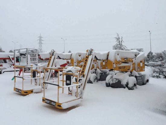 - Für ausreichende Traktion sorgen: Schnee und Eis reduzieren die Bodenhaftung. Nutzen Sie geländetaugliche MEWPs oder Schneeketten, wenn nötig.